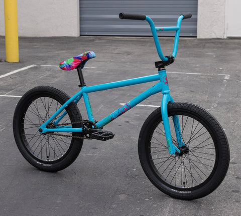 Aaron Ross' signature Sunday Forecaster 20" bike has a chromoly frame, integrated headtube drilled for gyro tabs, 1-1/8" fork w/ a chromoly steerer tube and dropouts, Sunday Freeze topload stem, 9" rise 2pc bars, Odyssey Keyboard grips, Odyssey Springfield U-brake and lever, chromoly 3-pc cranks with sealed Mid BB, 25T Sunday Sabretooth-style sprocket, KMC Z1 chain, Odyssey Clutch v2 freecoaster hub with 9T driver, 3/8" sealed FA front hub, 36H Stage1 rims, Odyssey Path Pro OEM 2.4" tires, Sunday pivotal seat and Odyssey Twisted PRO PC pedals.