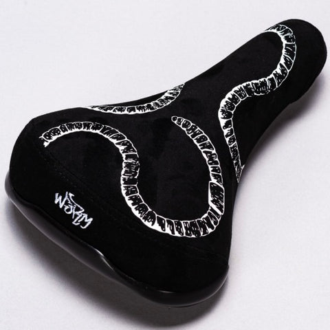 The Mafia Worm railed seat features a padded base wrapped in a custom cover. Compatible with railed seatposts